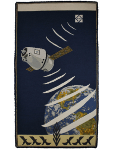 Carlos Noronha Feio has designed a series of Arraiolos carpets, which depict images of modern technology that may be used in war such as jet fighter planes, tanks, rockets and satellites, although they can also have many other peaceful technological and exploratory functions. This is highly political work, like the doormat-size carpet seen in the window of a Mayfair carpet dealers depicting a United States Five Dollar Bill across its entire width, which offers conflicting potential views of American patronism and luxury, versas walking over a past president and abandoning capitalism or commercialism. In Feio’s work the blood shed by those on the front line, along with civilian casualties in situations such as the dropping of the atomic bomb in Hiroshima, is interwoven with that of the carpet makers, whilst Feio seemingly keeps his hands clean in designing the piece like a political or military leader. This work consequently seems to question the reason for the existence and production of the depicted things, as the ownership of nuclear defence weapons seems questionable when no one would want to use them, and hence the work also addresses man as his own worst enemy.