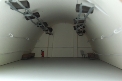 In Linear B Jonas Ranson’s Plans for a New Mausoleum at Halicarnassus (2011) is made in response to Vassili Balatsos’ perspective drawing of, or design for, a modern minimal building, clad in industrial metal strips and with a balcony on the upper floor, made with strips of primary coloured tapes. However whilst Ranson picks up using parallel lines in a mixture of primary colours, this large print also seems to heavily reference Pierre Cordier’s Chemigrams featured in the V&A‘s Shadow Catchers: Camera-less Photography exhibition last winter. Cordier created a photographic technique he called Chemigram, painting materials such as nail vanish and oil onto photosensitive paper prior to exposure and developing. The traces left from painting, as in Chemigram 30/12/81 I (1981), leave a perfect series of parallel lines created by the brush stroke, an abstract composition which could perhaps depict cornfields with neatly arranged rows of crops. These marks are much like the parallel lines in Plans for a New Mausoleum at Halicarnassus (2011), which appear to describe buildings, roads, paths, corridors or electrical circuit diagrams, that map a building, campus, development or city, just as Balatsos’ drawing maps a building and records the parallel vertical lines of its cladding.